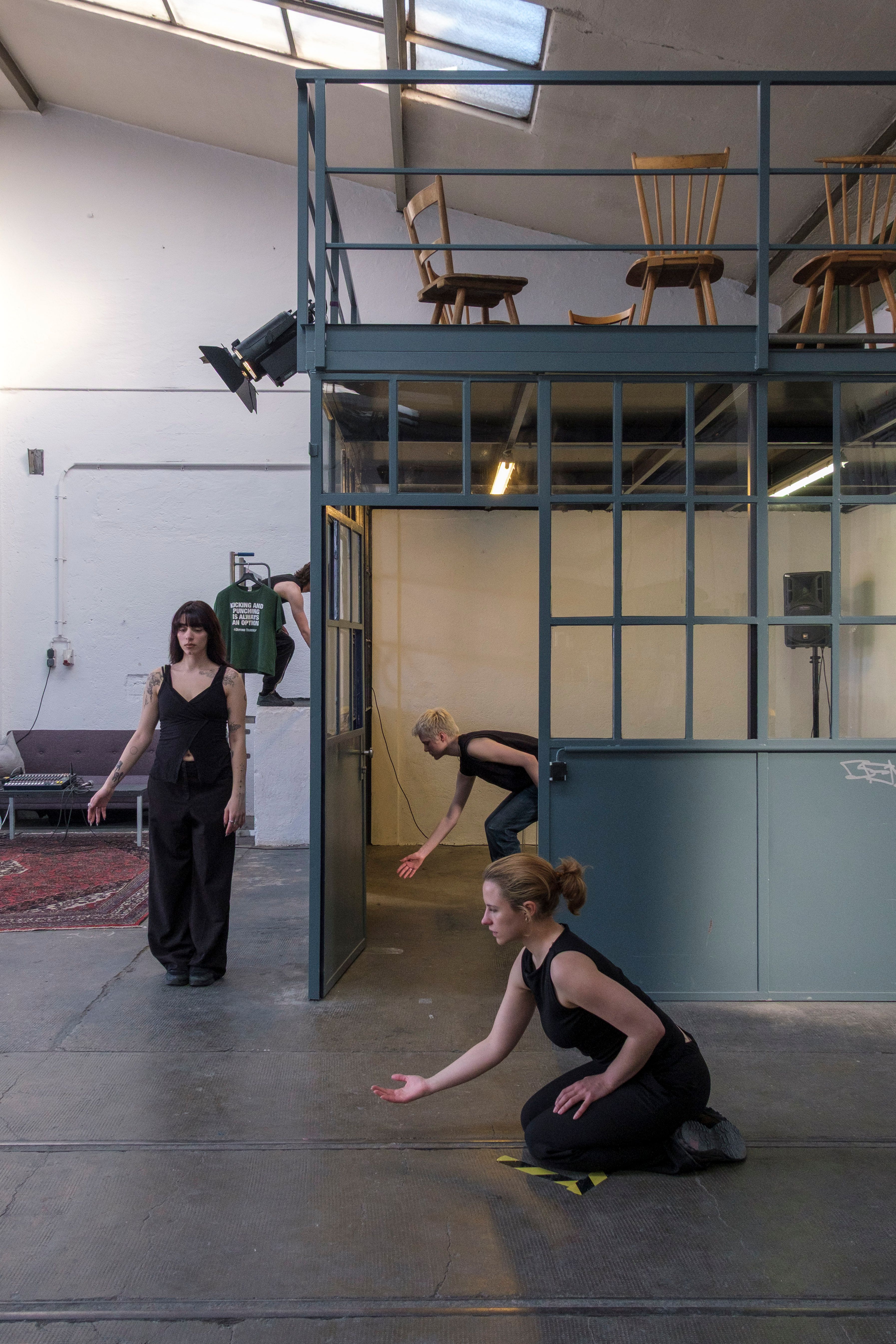 The work exists in two variatons, as evening length performance with a duration of 40-minutes and 4 performers and as durational performative interventions, engaging with the notion of “gray zones”. It premiered in April 2025 at Zirka München, and was shown in the context of DANCE Festival Munich at Haus der Kunst in May 2025.