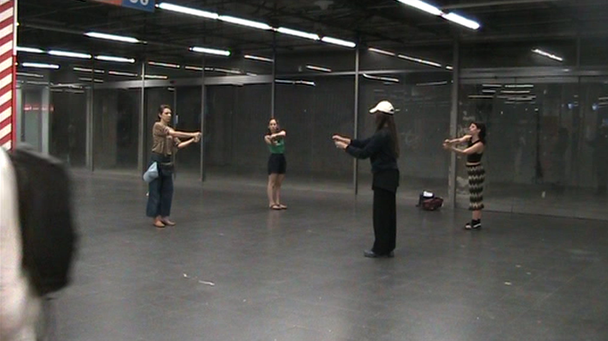 The absence of the object created an ambivalent situation: viewers were confronted not with a material symbol but with movements oscillating between authority, tradition, and emptiness. The everyday space of the subway became temporarily charged, functioning as a stage for both the performative repetition of power-related gestures and their simultaneous destabilization.