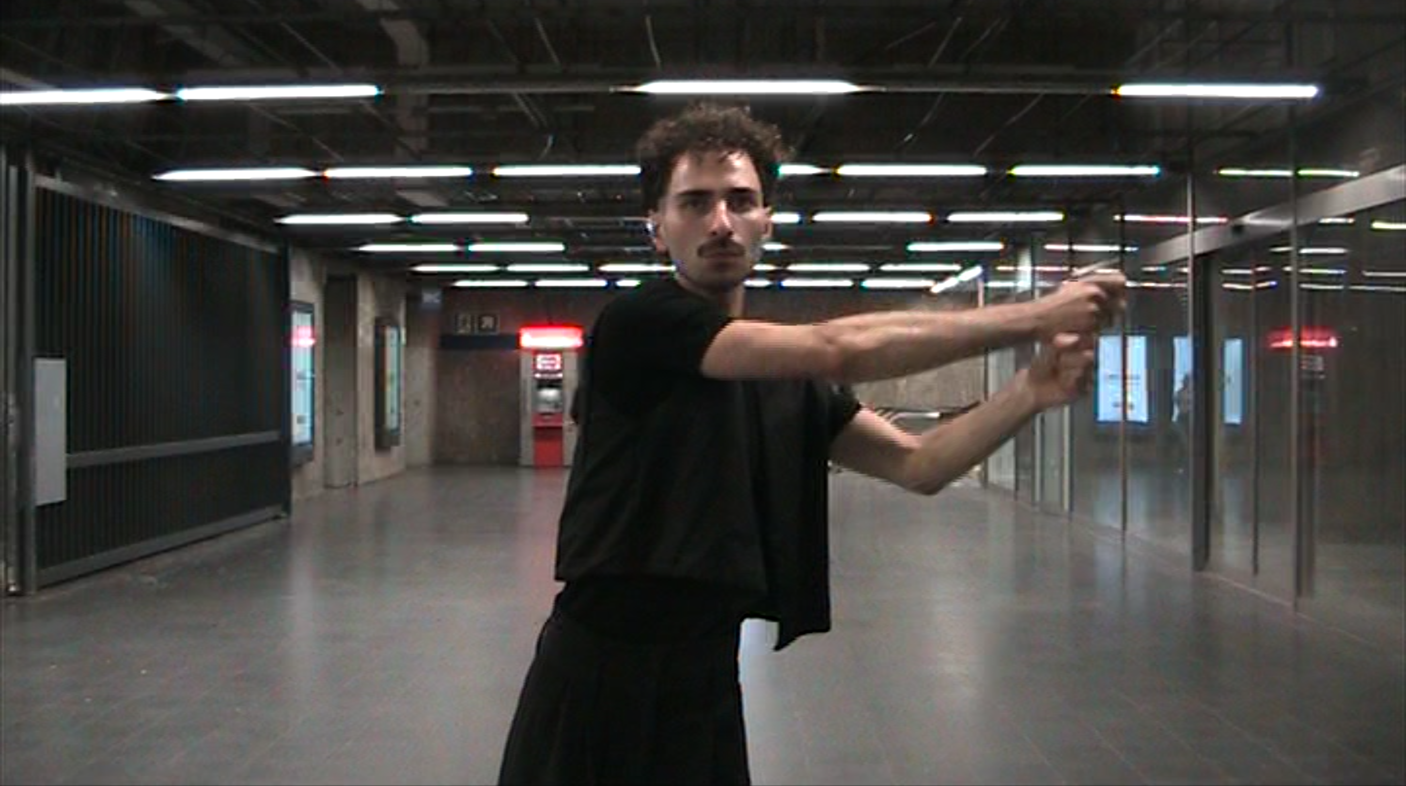 The work was realized as a series of five to ten minute performative interventions at the subway station Universität in Munich. Between one and six performers entered the B-Ebene of the station and enacted the gestures of flag-swinging, while the flag itself remained absent. The choreography was inspired by the traditional flag-swinging competitions (Fahnenschwinger Meisterschaften) and transferred into the public context of the station.
